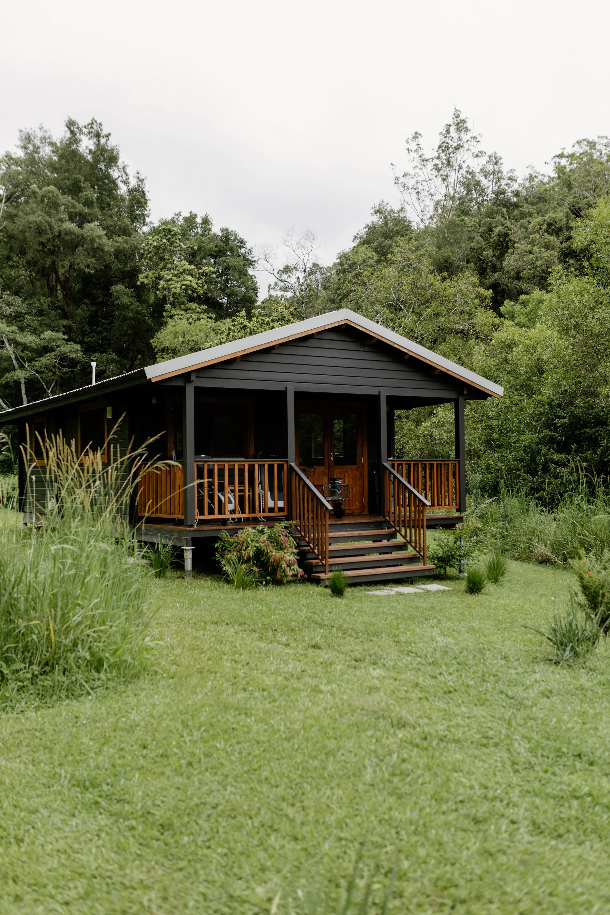 The property is a rural retreat of 100 acres that backs on to natural rain forest with views to the surrounding forested hills